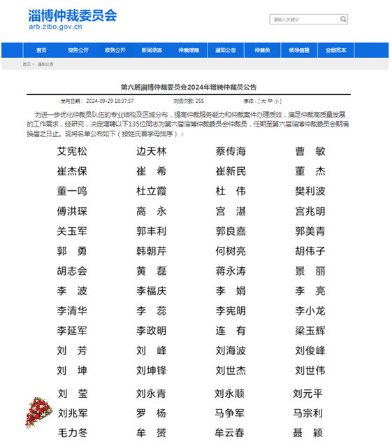 2024年9月29日,淄博仲裁委员会发布第六届淄博仲裁委员会2024年增聘仲裁员公告,决定增聘135位同志为第六届淄博仲裁委员会仲裁员,任期至第六届淄博仲裁委员会期满换届之日止。山东丰浩律师事务所刘兆军主任作为国内建设工程法律领域内的专家,被淄博仲裁委员会聘请为第六届仲裁员。这是继济南仲裁委员会仲裁员、海南国际仲裁院(海南仲裁委员会)仲裁员之后又一个新的受聘,这是对刘主任的又一次肯定和新的鼓励。