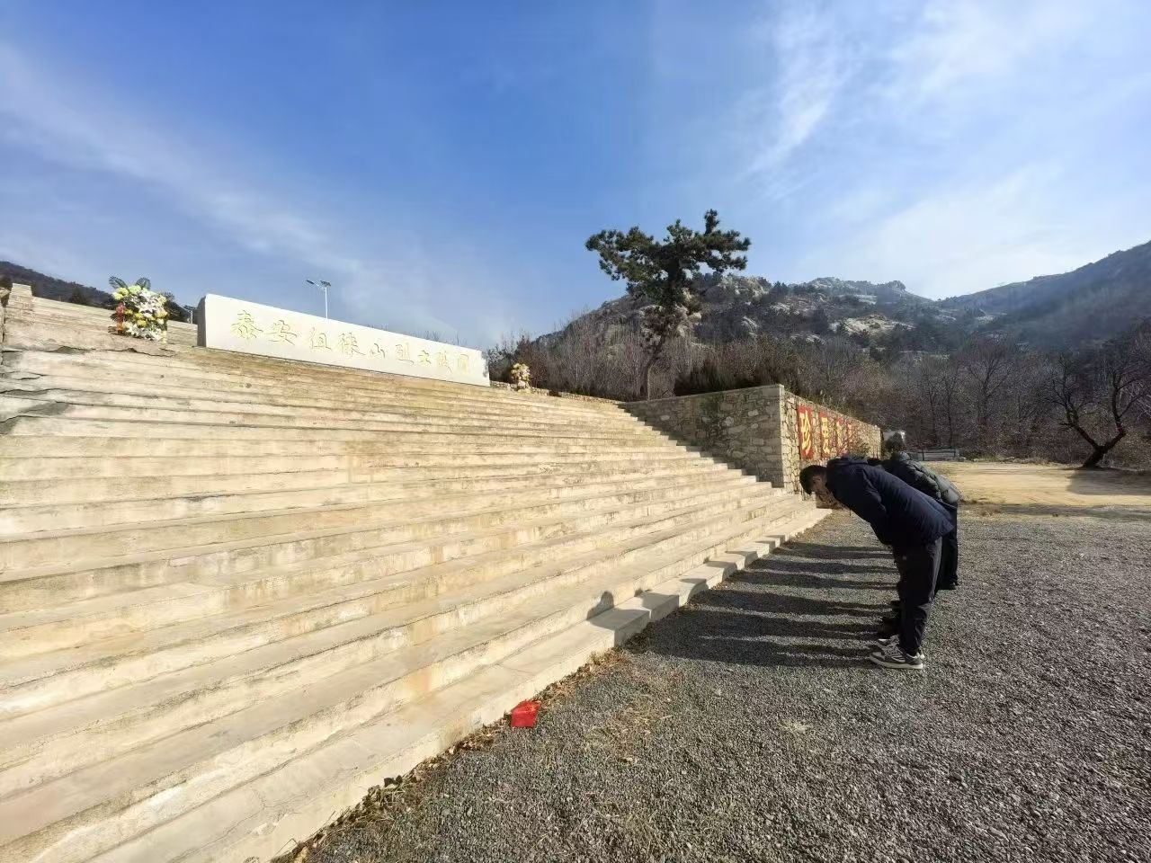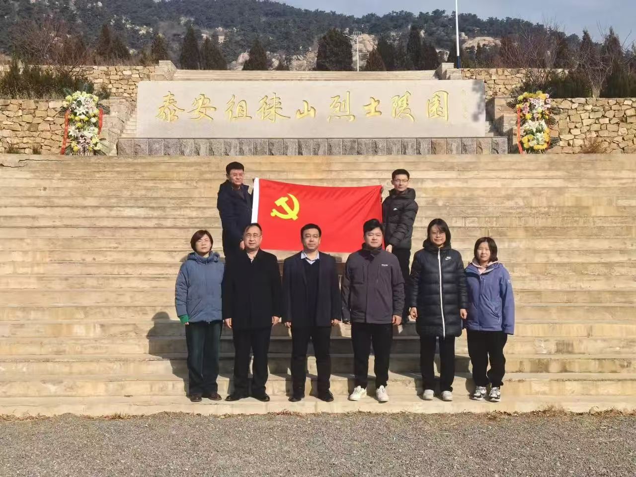 来到泰安徂徕山烈士陵园,大家列队肃立,党员代表迈着庄重的步伐,缓缓前行,将满载敬意与缅怀的花圈敬献于革命烈士纪念碑前。这一刻,全体党员满怀敬意,共同追忆那些为了国家独立、民族解放而英勇献身的革命英雄,他们的光辉事迹如同璀璨星辰,照亮着后人前行的道路。